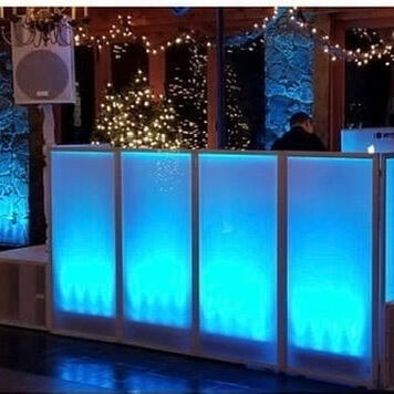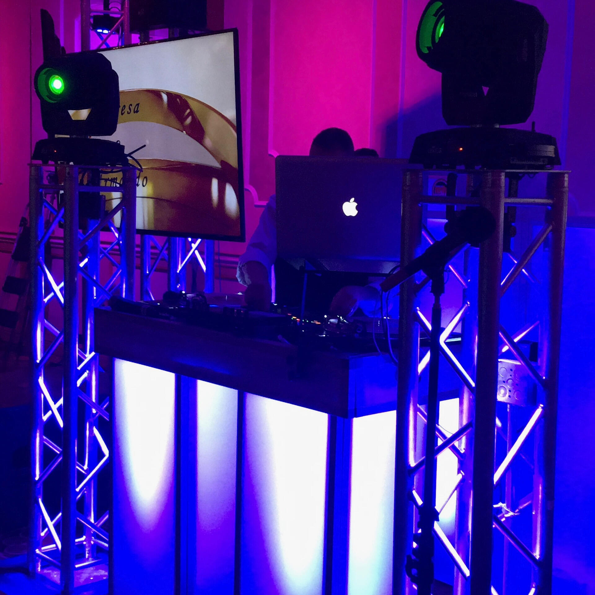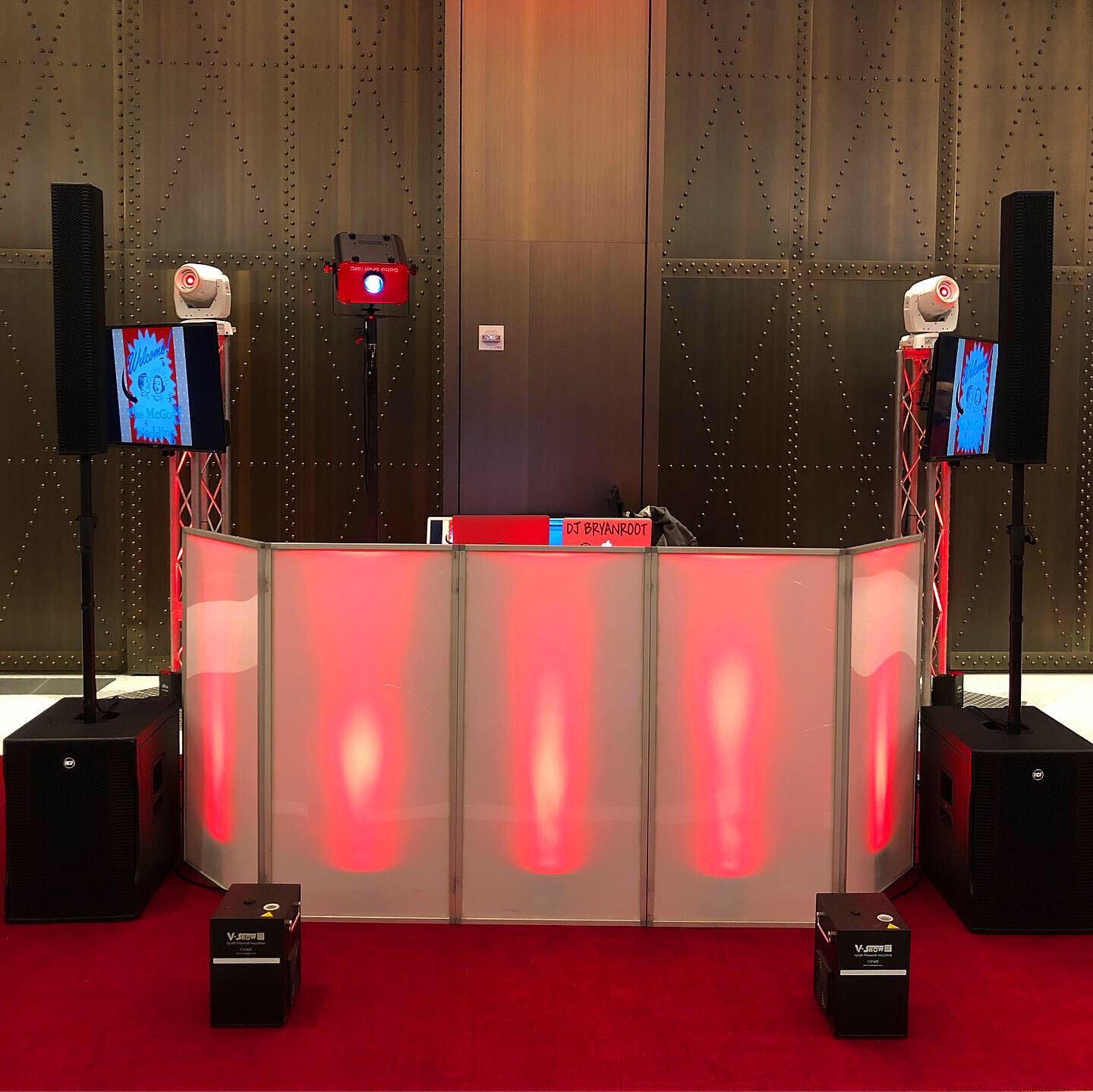 Starting pricing reflects base coverage. Base coverage consists of a basic sound system, one person DJ/MC, and an illuminated facade/frontboard. Final pricing depends on event type, hours, location, and production needs (DJ/MC, lighting, photo booth, ceremony audio, and corporate A/V).