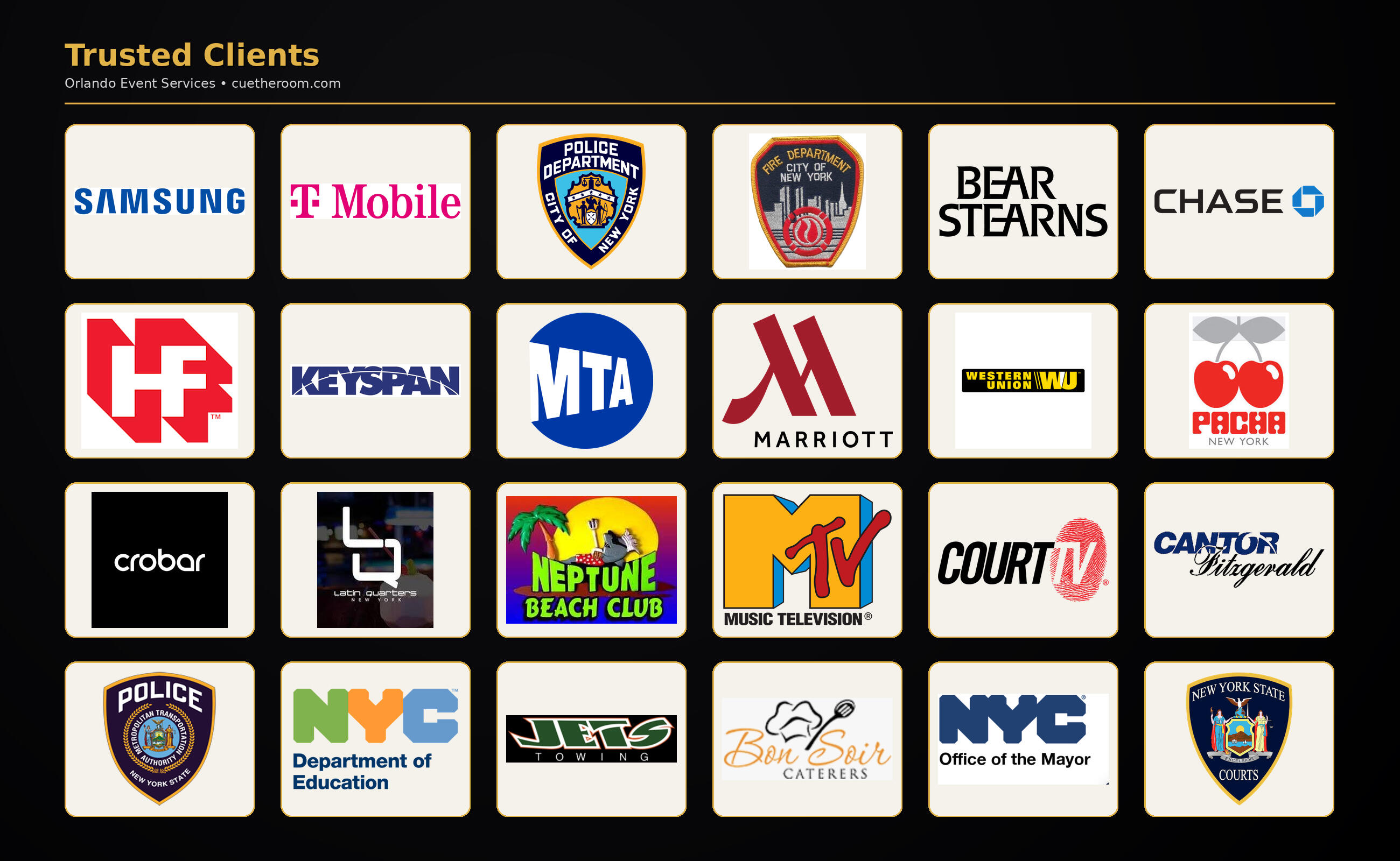 Today, through Orlando Event Services, Joseph brings that same level of detail and energy to weddings, private celebrations, and corporate events—delivering polished MC work, smart music programming, and professional corporate A/V support.